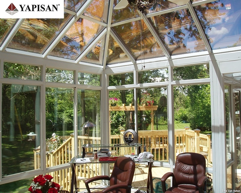 Cam çatılı kış bahçesi modellerinde güneş ışınlarının sera etkisini azaltmak için çatıda Reflekte Temperli Lamine Isıcam kullanılmaktadır. Çatı camları, üzerine sert bir cismin çarpması halinde parçalanıp aşağıya dökülmez sadece çatlar. Etraf pencerelerinde ise ısı izolasyonlu özel camlar kullanılır.
