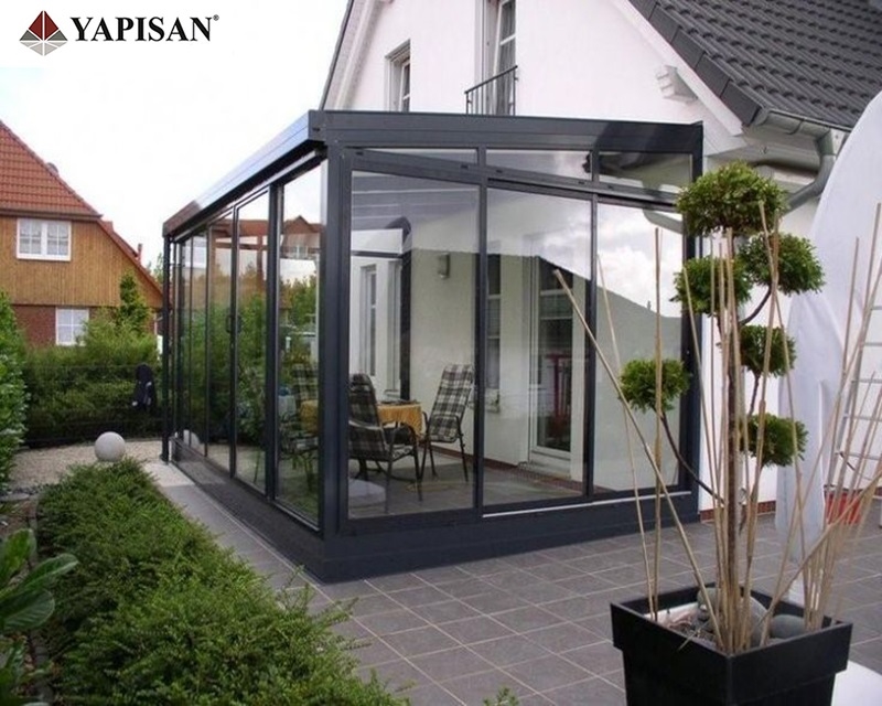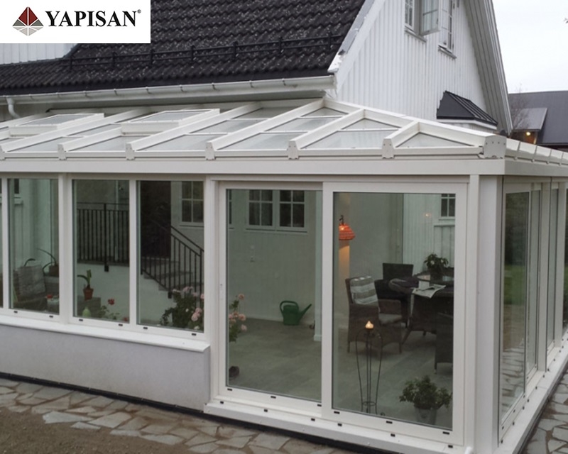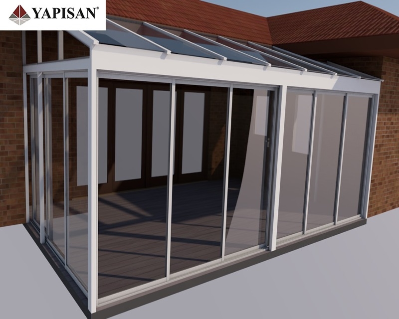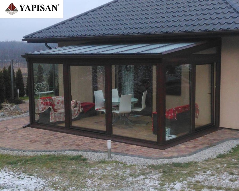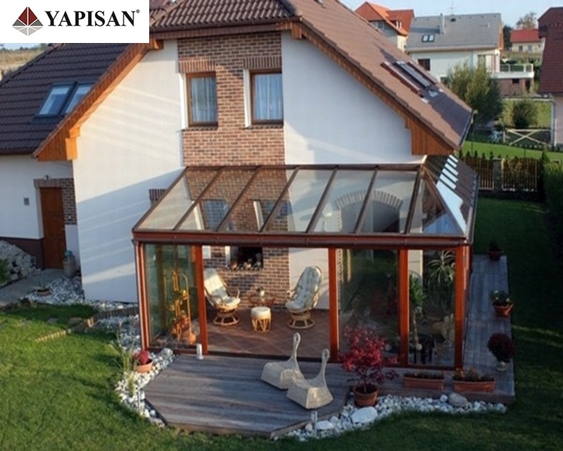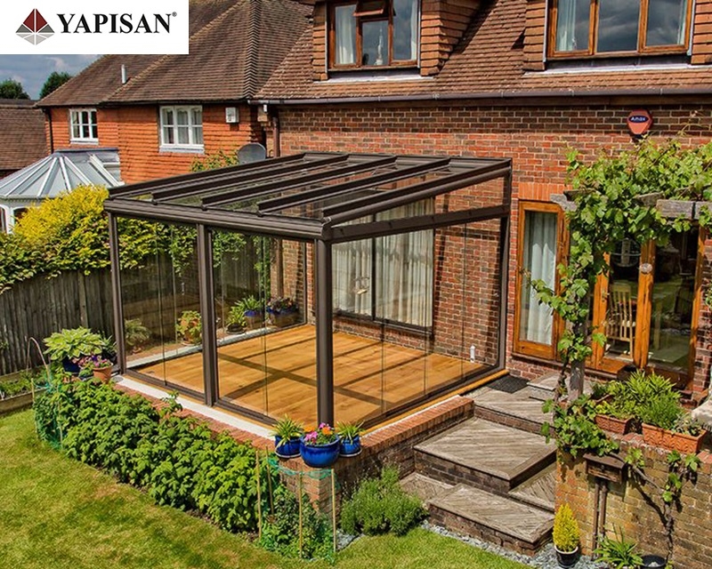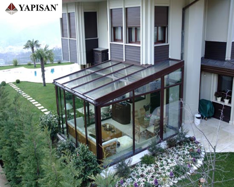 Cam çatılı kış bahçelerinin etrafı pvc, alüminyum veya katlanır cam olarak dizayn edilebilir.