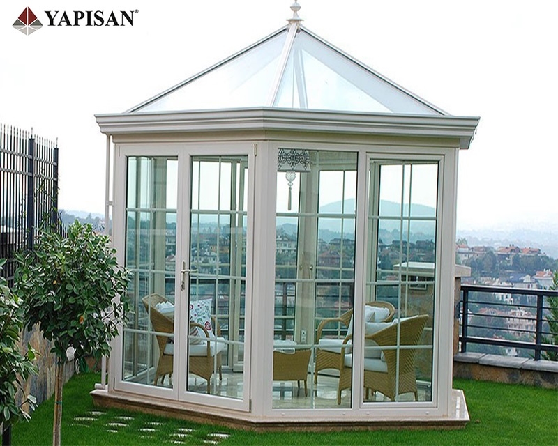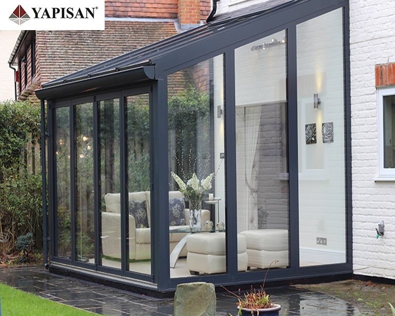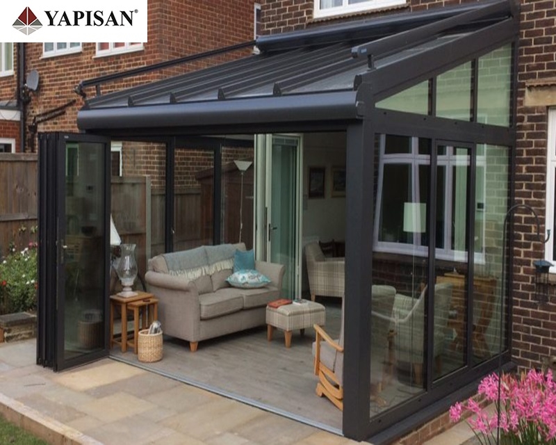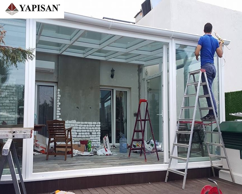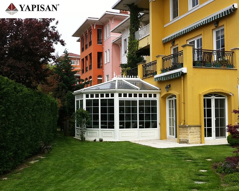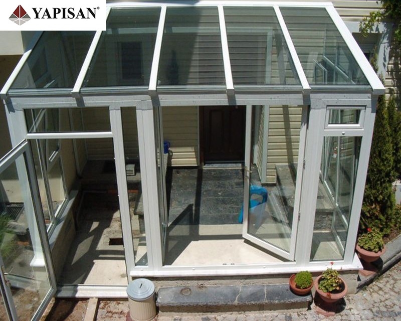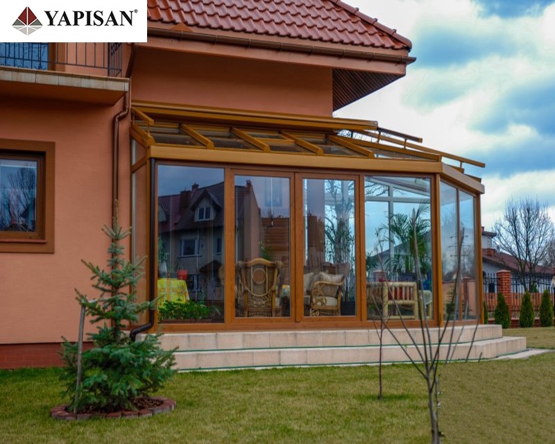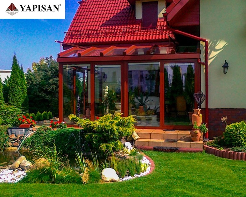 Cam çatılı kış bahçelerinin etrafı pvc, alüminyum veya katlanır cam olarak dizayn edilebilir.