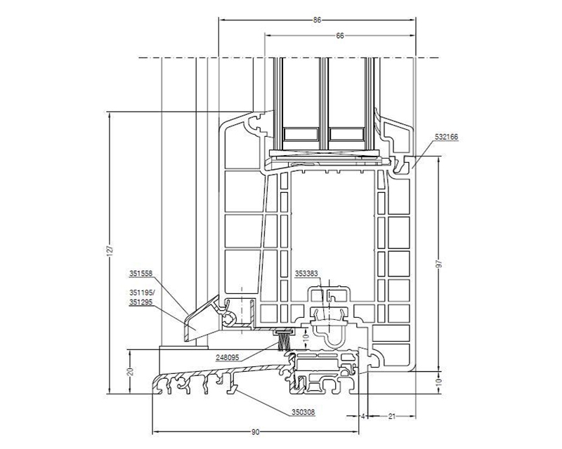 • Üçlü ısıcam uygulaması için 66 mm geniş cam boşluğu